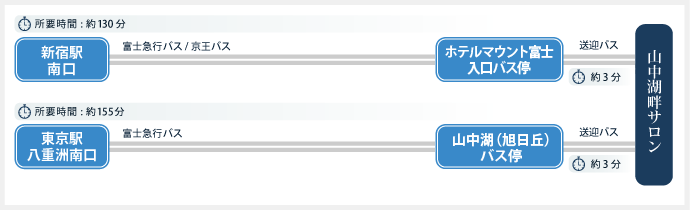 ※電車での所要時間には待ち時間、乗り換え時間などは含みません。 ※シーズンや時間帯により、時間が多少異なることがあります。